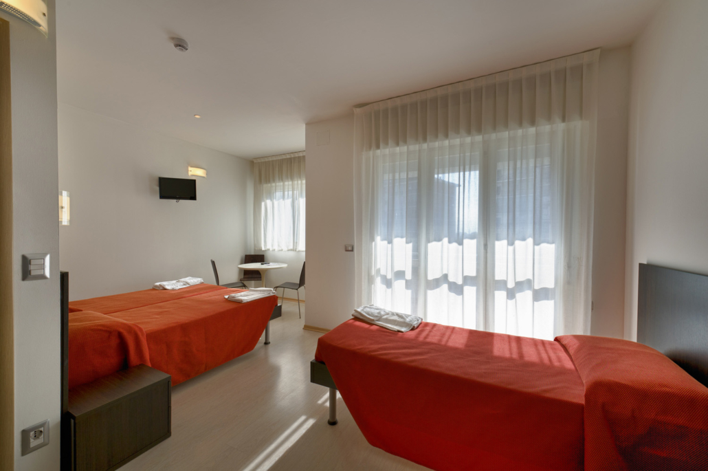 Moderne e luminose Sharing Torino offre 58 camere hotel, doppie e triple oltre alle family room fino a 4 posti letto.