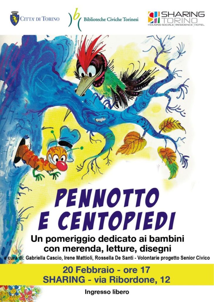 Lunedì 20 febbraio 2017, alle ore 17, presso la sala al piano terra di SHARING, via Ribordone 12, sarà letta la favola dal titolo Pennotto e Centopiedi, una storia di amicizia e di rispetto per la natura.