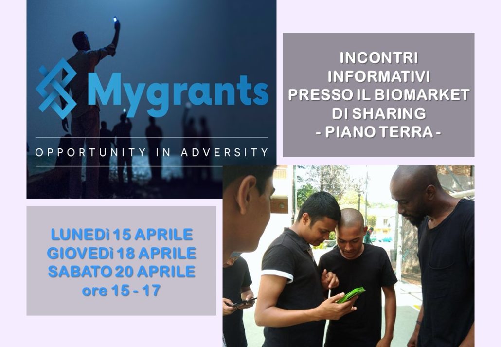 Comunichiamo che questa settimana sarà presentata in tre appuntamenti di laboratorio extra, l’App “Mygrants”. Si tratta della piattaforma educativa online più utilizzata da rifugiati e richiedenti asilo in Italia. Un percorso formativo di 6 mesi che, analizzando le risposte ai molti quiz proposti, valida le competenze pregresse e permette di acquisirne di nuove e che si conclude con l’inserimento lavorativo di quanti hanno dimostrato costanza, motivazione e determinazione!