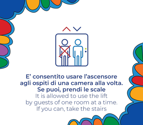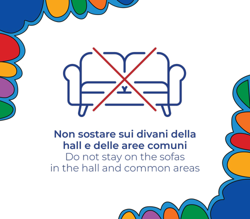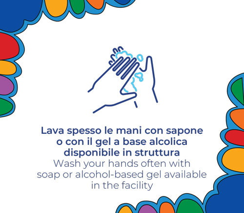 • Dispenser di gel disinfettante a vostra disposizione in ogni ambiente;