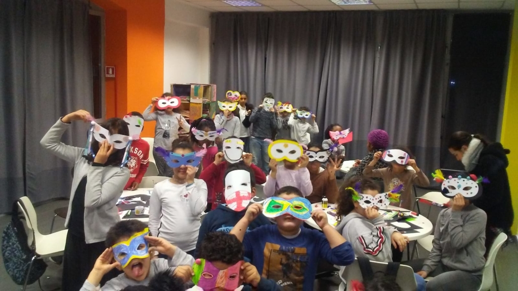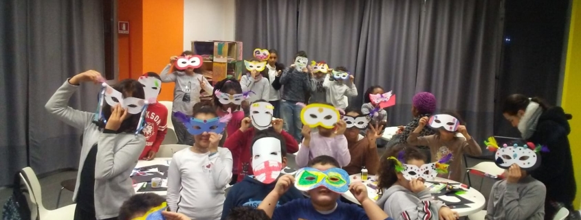 Alla fine, visto che il carnevale è imminente, sotto la guida di Marcello, delle volontarie e delle mamme presenti, tutti i bambini hanno realizzato delle maschere di carnevale.