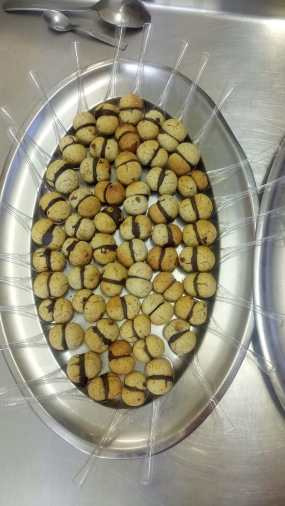 La seconda parte del corso si è svolta in cucina, abbiamo conosciuto gli strumenti della cucina ed i suoi spazi. Poi abbiamo preso gli ingredienti e abbiamo iniziato il vero laboratorio di cucina.